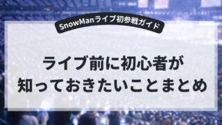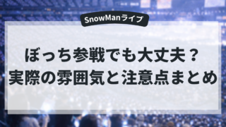 「SnowManのライブって当日どんな流れで動くの?」初めて参加する場合、当日の動きが分からず不安に感じる人も多いと思います。この記事では、SnowManライブ当日の流れを会場到着から終演後まで順番に分かりやすく解説します。事前に...